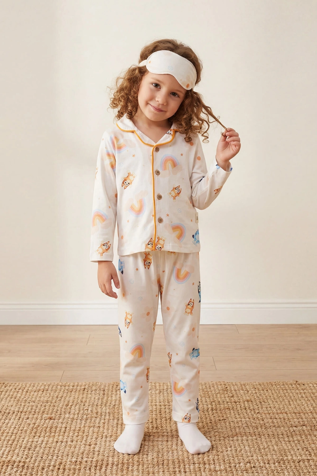 - 3-10 yaş arası kız çocukları için ideal, rahat ve şık bir pijama takımı.; - Baskılı deseniyle dikkat çeken ve genç kızların tarzını yansıtan tasarımı.; - Basic silueti sayesinde gün boyu konforlu bir kullanım sunar.; - Uzun paça boyu ve boru paça tasarımı ile ayakları sıcak tutar.; - Full düğme kapama özelliği kolay giyip çıkarma imkanı sağlar.; - 24/1 penye süprem dokuma tipi, yumuşak dokusuyla cildi rahat ettirir.; - Tüm sezonlarda giyilebilecek çok yönlü bir üründür.; - Biye detayları ile şık bir görünüm kazandırır.; - %100 pamuk materyali sayesinde nefes alabilen ve terletmeyen bir yapıya sahiptir.; - Uzun kol tasarımı soğuk gecelerde ekstra koruma sağlar.; - Fitted kalıbı vücuda tam oturarak rahat hareket etme olanağı tanır.; - Türkiye'de üretilmiştir, yerel üretim kalitesini evde deneyimleyin.;