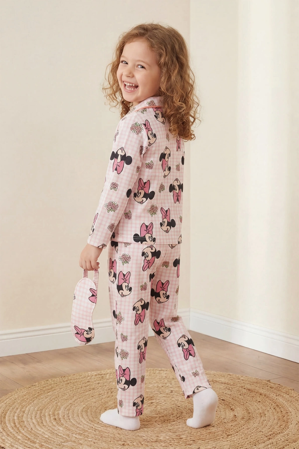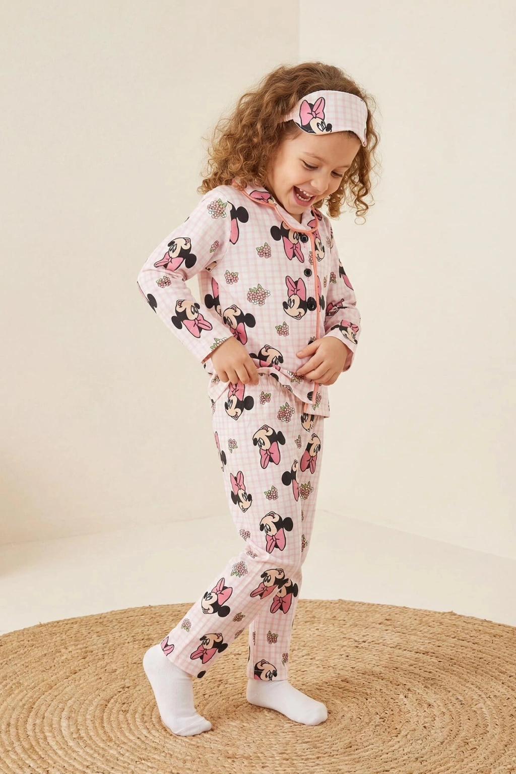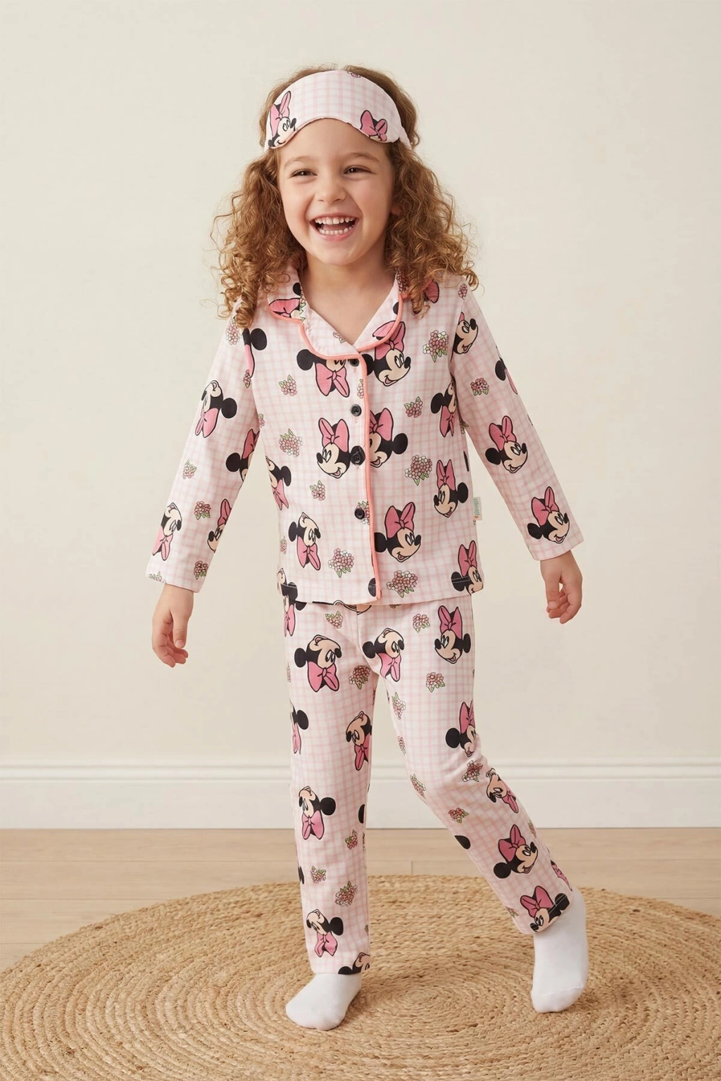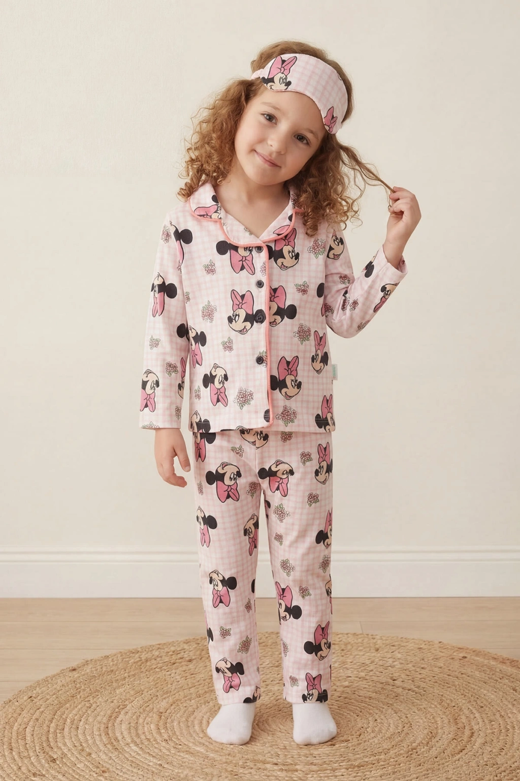 - 3-10 yaş arası kız çocukları için ideal, rahat ve şık bir pijama takımı.; - Göz bantlı tasarımı ile uyku öncesi konforu artırır ve gözleri rahatlatır.; - %100 pamuklu kumaşı sayesinde cildi tahriş etmeden yumuşak bir dokunuş sunar.; - Tam düğme kapama özelliği ile kolay giyilip çıkarılabilir ve pratik kullanım sağlar.; - Uzun paça ve uzun kol tasarımı, soğuk gecelerde ekstra sıcaklık ve konfor sunar.; - Basic silueti ve boru paça kesimiyle modern ve zamansız bir görünüm kazandırır.; - Baskılı deseni ile çocukların ilgisini çeker ve eğlenceli bir uyku deneyimi sunar.; - Tüm sezonlar için uygun olan bu pijama takımı, yılın her zamanında rahatlıkla tercih edilebilir.; - Homewear koleksiyonuna ait olan bu ürün, evde geçirilen zamanları daha keyifli hale getirir.;