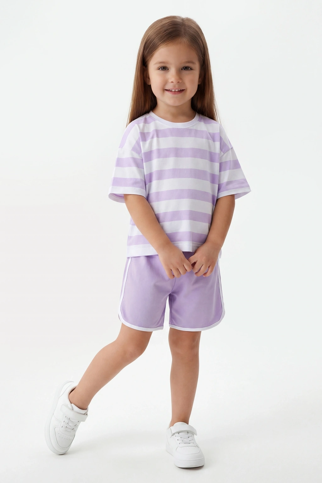 3-10 yaş arası kız çocukları için rahatlık ve şıklığı bir arada sunan Mixima Oversize Tişört ve Şort Takımı, yaz mevsiminde gardırobunun vazgeçilmezi olacak.