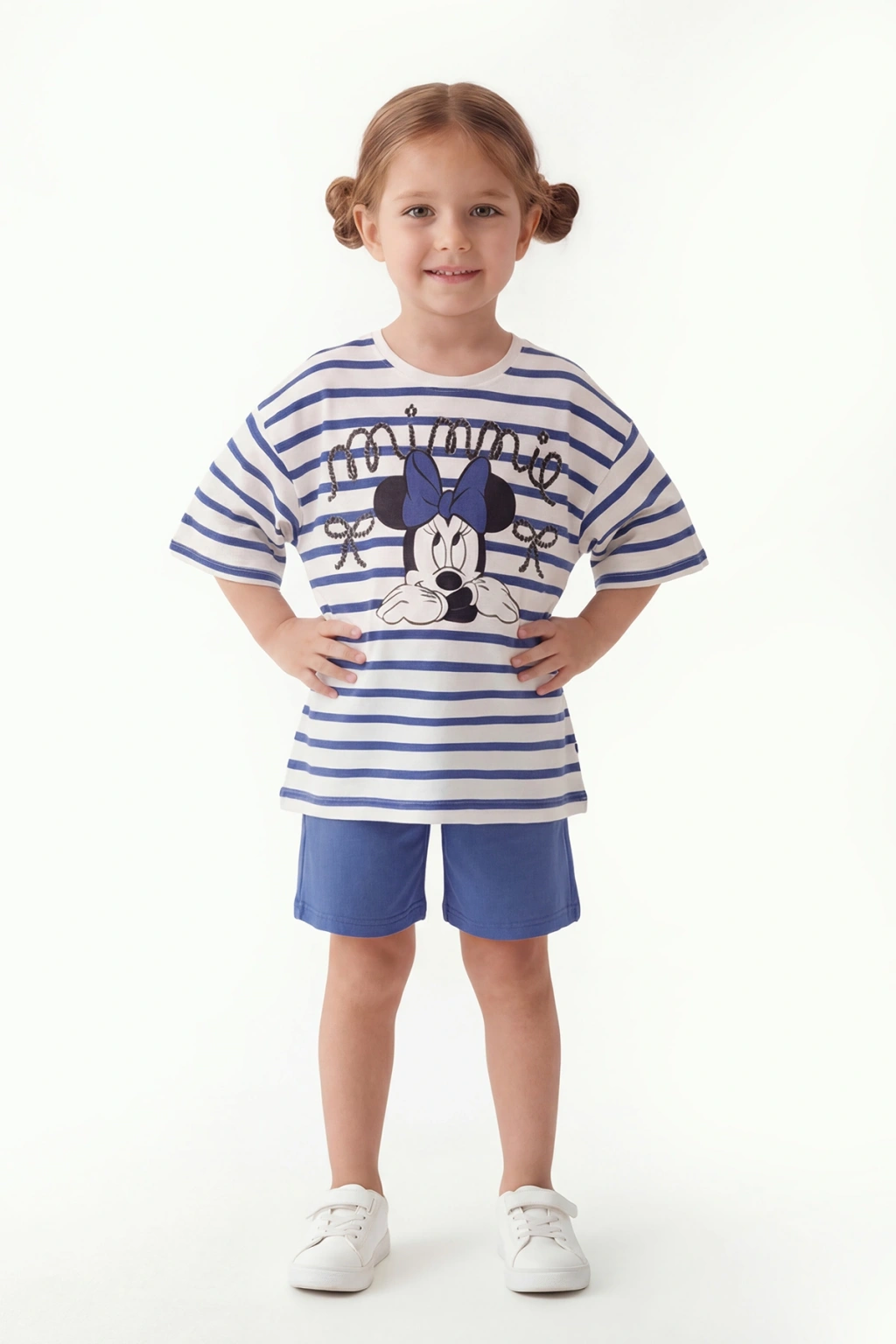 • 3-10 yaş kız çocukları için rahat ve şık bir seçenek olan %100 pamuk oversize tişört ve şort takımı.