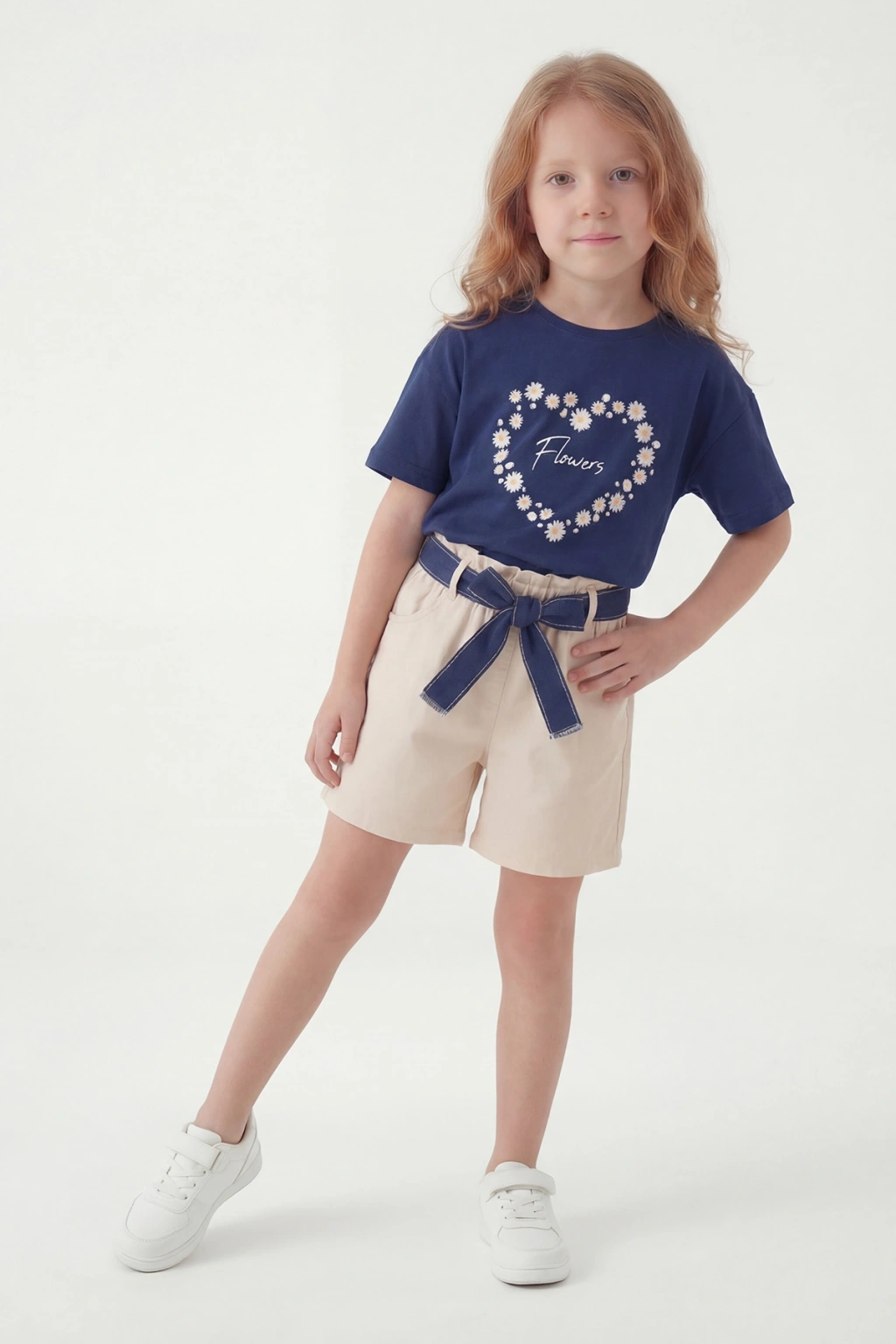 Kız çocuklarının yaz stiline şıklık ve rahatlık katan bu özel takım, %100 pamuk kumaşı sayesinde nefes alır ve gün boyu konfor sağlar.