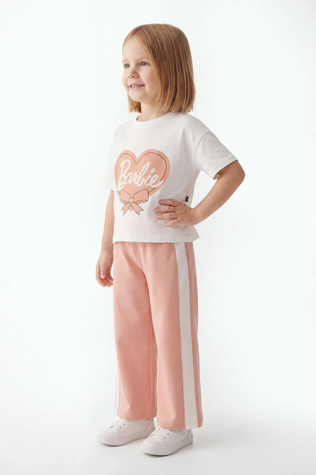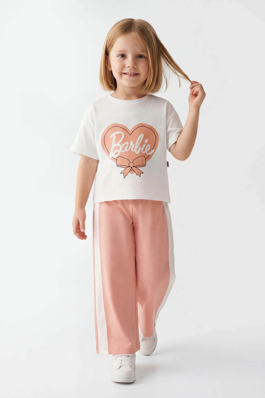 Yaz aylarında hem rahat hem şık bir kombin arayan çocuklar için tasarlanan Barbie baskılı kız çocuk yazlık takım, modern görünümü ve %100 pamuk kumaşıyla gün boyu konfor sağlar.