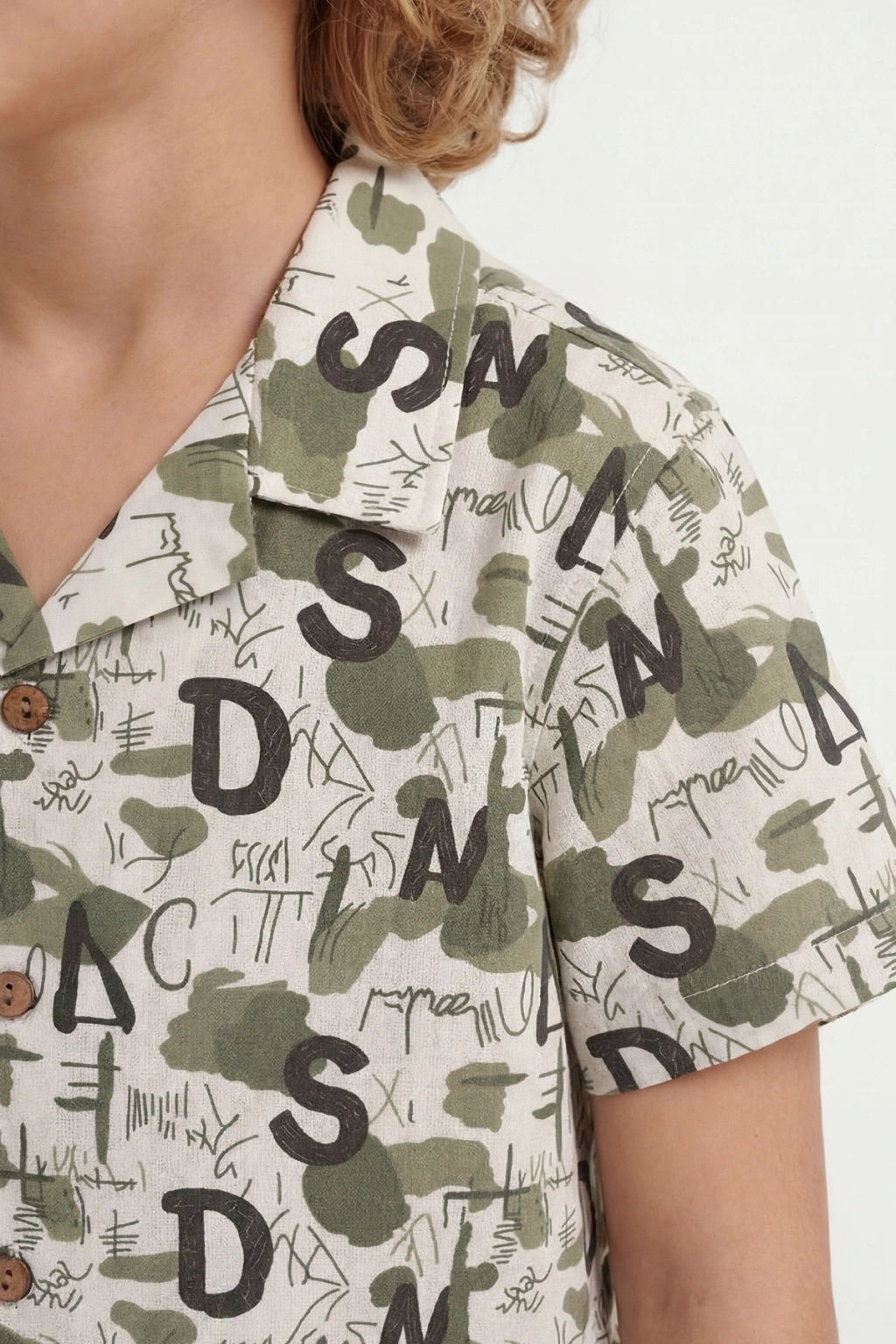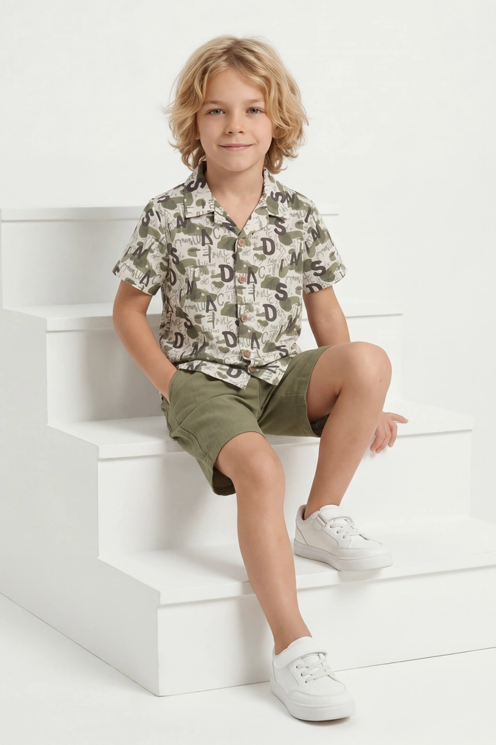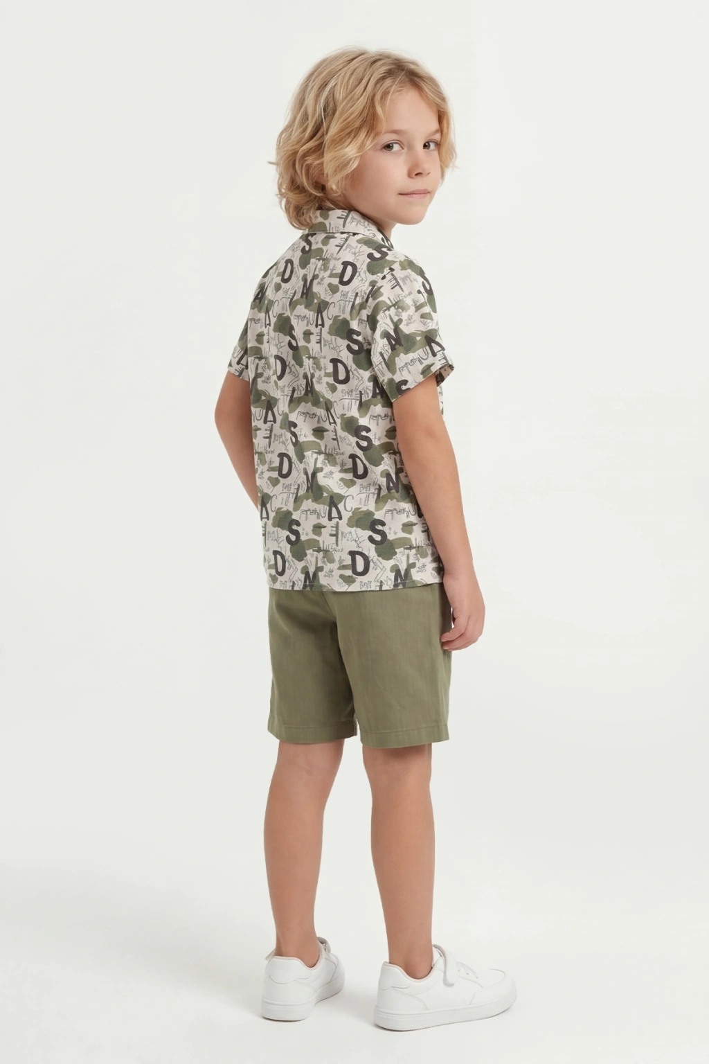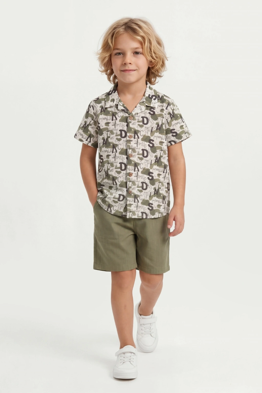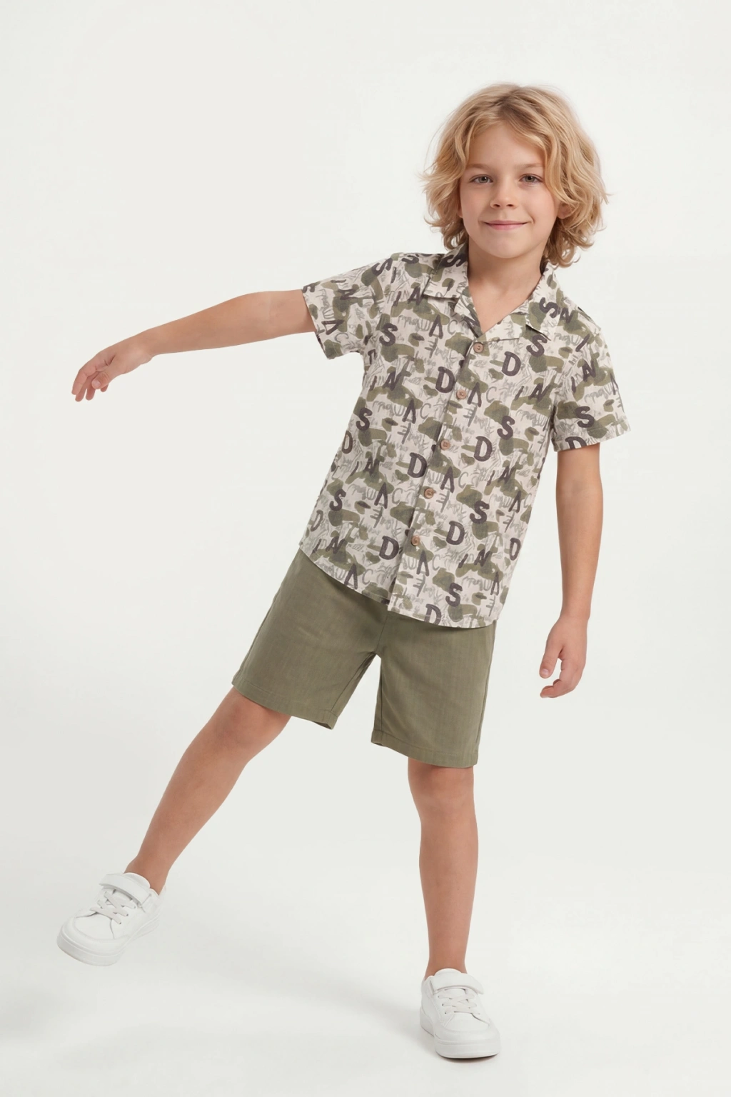 4-8 Yaş Erkek Çocuk Keten %100 Pamuk Yazlık Takım – Desenli Gömlek ve Şort Rahat Kesim Kombin