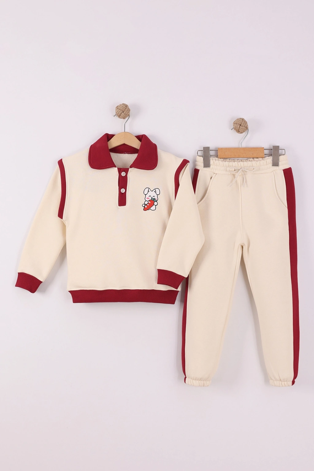 - Kış aylarında sıcak tutan kalın dokuma tipi 3 iplik penye şardonlu kumaştan üretilmiştir.; - Rahat hareket edebilme imkanı sunan lastikli paça tasarımı ile konforlu bir kullanım sağlar.; - Çift cepli yapısı ile küçük eşyalarınızı yanınızda taşımanız için pratik bir çözüm sunar.; - Bağcıklı kemer detayı sayesinde bel bölgesini istediğiniz gibi ayarlayabilirsiniz.; - Uzun kollu ve standart kol tipi, soğuk havalarda ekstra koruma sağlar.; - Düğmeli tasarım, şık ve modern bir görünüm kazandırırken kolayca giyilip çıkartılabilir.; - Sportswear koleksiyonuna ait bu takım, aktif günlerinizde rahatlıkla tercih edilebilir.; - Pamuklu materyali sayesinde cildi tahriş etmeden yumuşak bir dokunuş sunar.; - Baskılı desenleriyle dikkat çeken bu takım, çocukların enerjisini yansıtan canlı renklerle tasarlanmıştır.; - Örme kumaş tipi esneklik kazandırarak hareket özgürlüğü tanır.; - Türkiye'de üretilmiş olup yerli malı olarak gururla sunulmaktadır.; - Cool & Comfort persona'sına uygun olarak tasarlanmıştır; hem şık hem de rahat