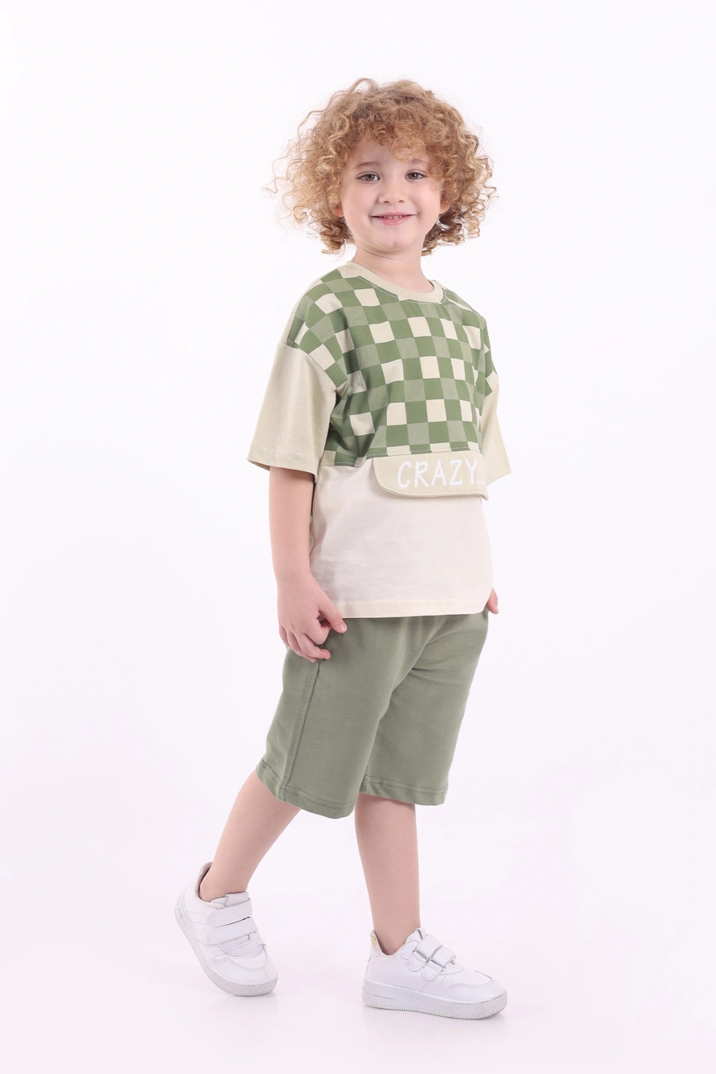 - Rahat hareket edebilmeniz için tasarlanmış, oversize kesimli kare baskılı şortlu çocuk takımı.; - Günlük kullanımınıza uygun, casual tarzda rahatlık sunan t-shirt ve şort kombinasyonu.; - Yüksek kaliteli %100 pamuk materyali ile cildinizin nefes almasını sağlar ve konforlu bir deneyim sunar.; - Kısa kol tasarımı sayesinde yaz aylarında serinlik hissi verirken, düşük kol detayı modern bir görünüm kazandırır.; - Alt-üst takım olarak tasarlanmıştır; hem üst hem de alt parçada aynı baskı bulunur, böylece şık ve uyumlu bir stil oluşturur.; - Erkek çocuklar için özel olarak üretilmiştir; enerjik ve dinamik tasarımla çocukların ilgisini çeker.; - Normal boy ölçüsüyle her bedene uygunluk gösterir; 3-6 yaş arası çocuklar için idealdir.; - Baskılı deseniyle dikkat çekici ve eğlenceli bir görünüm sağlar; çocukların favorisi olacak renklerle bezelidir.;