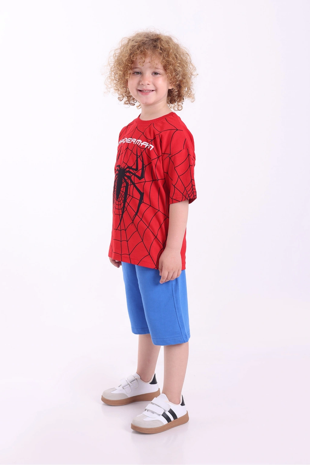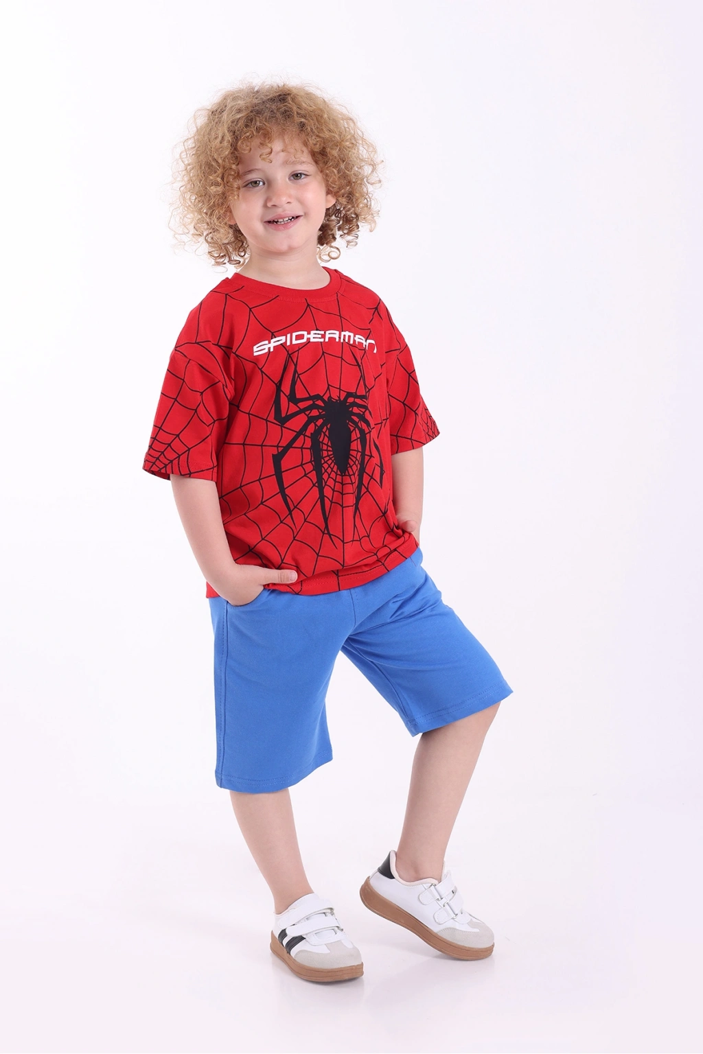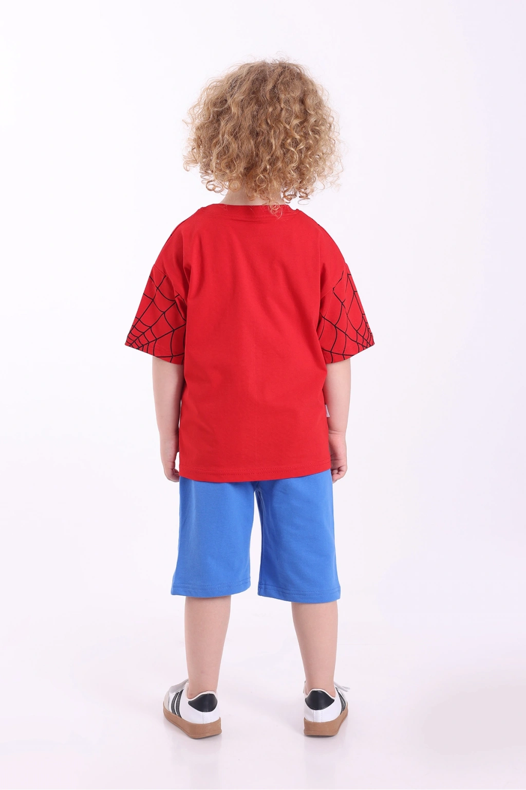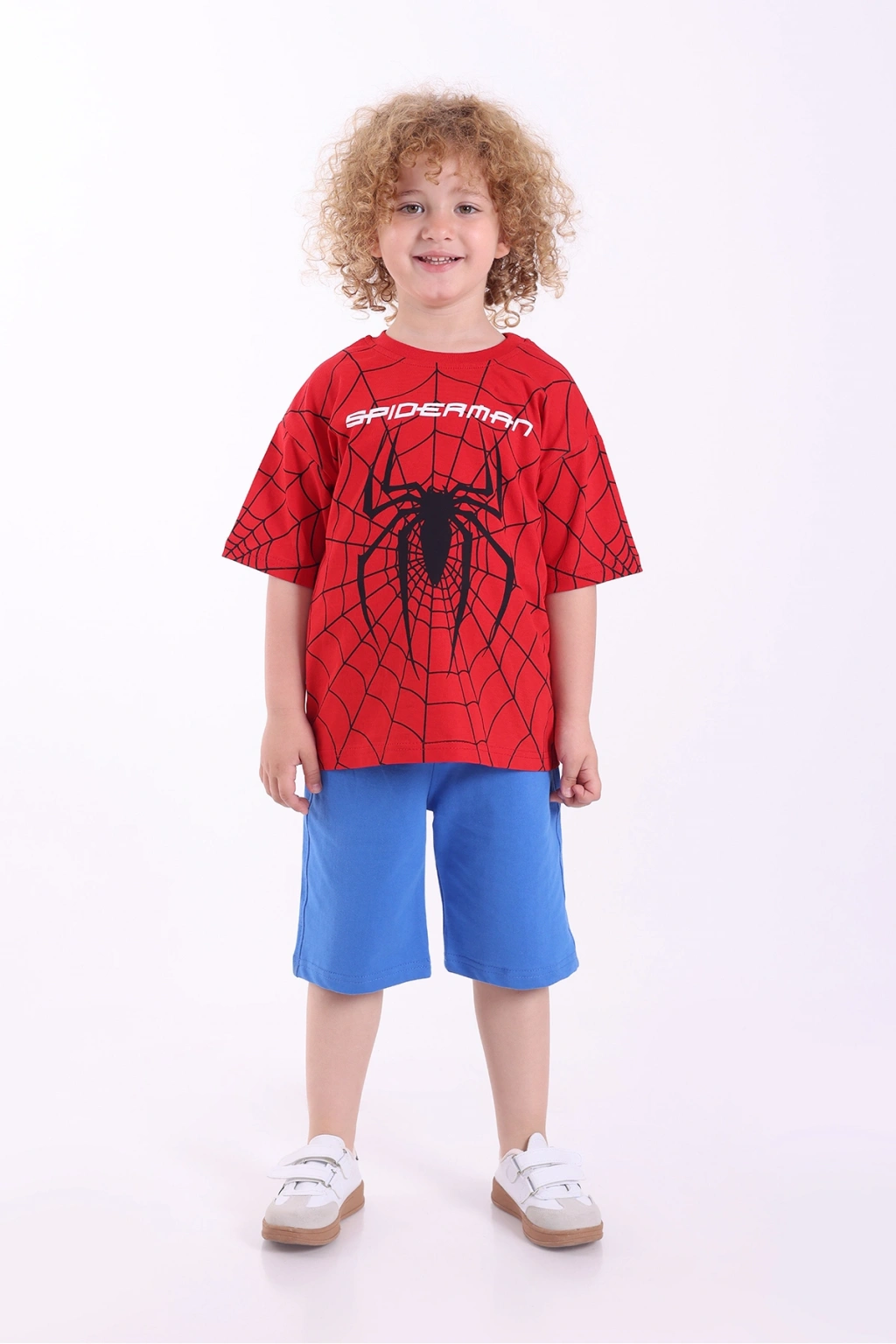 - Örme kumaş yapısı ile çocukların rahat hareket etmesini sağlayan oversize kesim, günlük kullanım için idealdir.; - %100 pamuk materyali sayesinde cildi tahriş etmeden yumuşak bir dokunuş sunar ve nefes alabilirliği artırır.; - Düşük kol tasarımı ve kısa kol boyu, yaz aylarında serinlik sağlarken şık bir görünüm kazandırır.; - Baskılı deseniyle dikkat çeken örümcek adam temalı bu takım, çocukların enerjisine uyum sağlayacak eğlenceli bir stil sunar.; - T-shirt ve şort kombinasyonu ile hem pratik hem de şık bir alt-üst takım oluşturur; böylece çocuklar her zaman tarzını korur.; - Casual ortamlarda rahatlıkla tercih edilebilen bu takım, günlük giyimin vazgeçilmez parçasına dönüşür.; - Erkek çocuklara yönelik tasarlanmış bu takım, onların dinamik yaşam tarzına uygun olarak özelleştirilmiştir.; -Normal boy kesimiyle her bedene uyum sağlayan bu takım, hareket özgürlüğü tanır.;