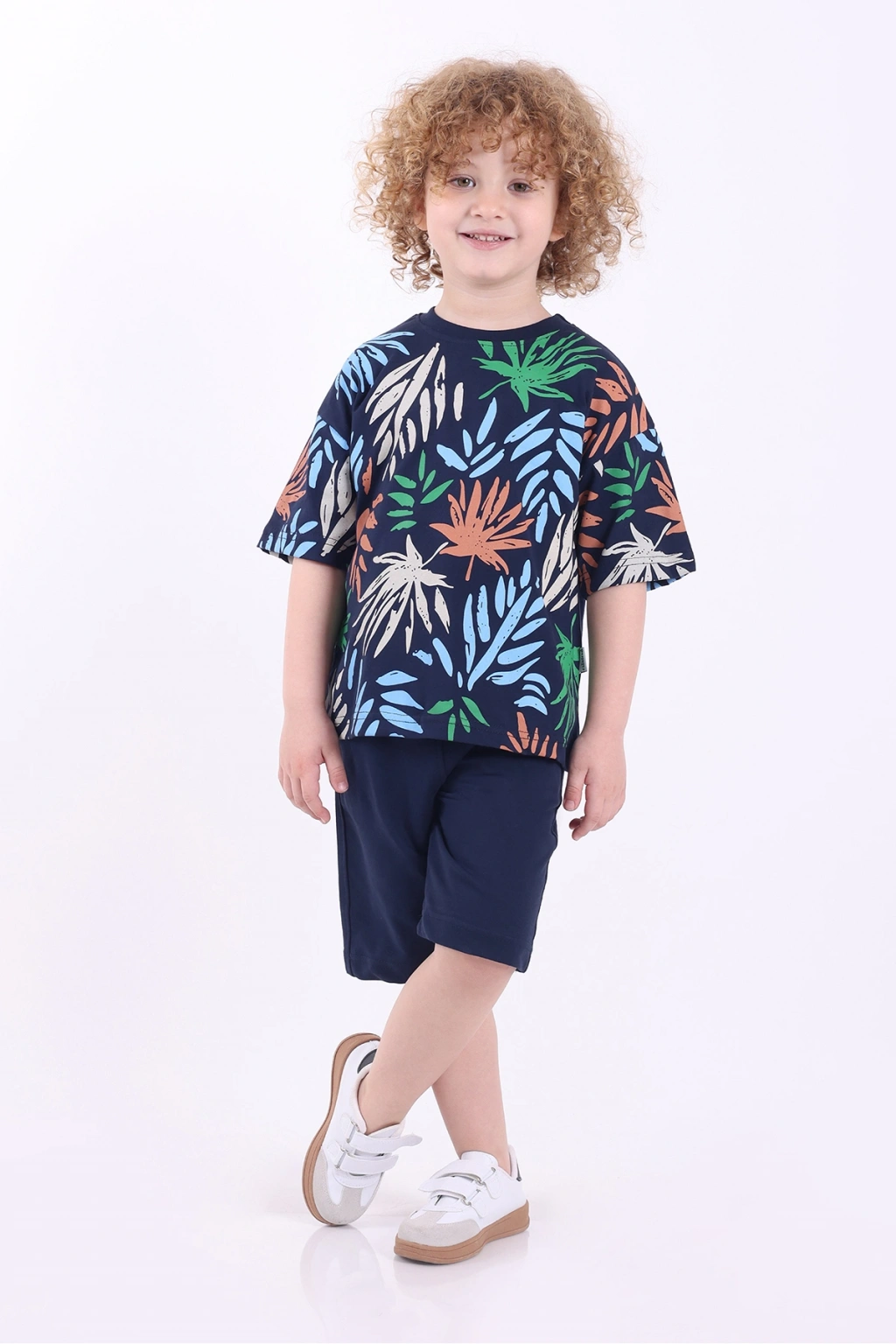 - Palmiye deseniyle çocukların enerjisini yansıtan, göz alıcı bir görünüm sunar.; - Rahat kesimi sayesinde hareket özgürlüğü sağlar; çocuklar gün boyu rahat ederler.; - Günlük kullanım için ideal olan bu takım, casual tarzıyla her ortama uyum sağlar.; - %100 pamuk materyali ile cildi tahriş etmeden yumuşak bir dokunuş sunar.; - Kısa kollu t-shirt tasarımı yaz ayları için serinlik ve konfor sağlar.; - Alt-üst kombinasyonu ile pratik giyim imkanı tanır; kolayca eşleştirilebilir.; - Düşük kol tipi modern bir stil oluştururken aynı zamanda rahatlık sunar.; - Cepli şort detayı hem fonksiyonel hem de şık bir dokunuş ekler.;