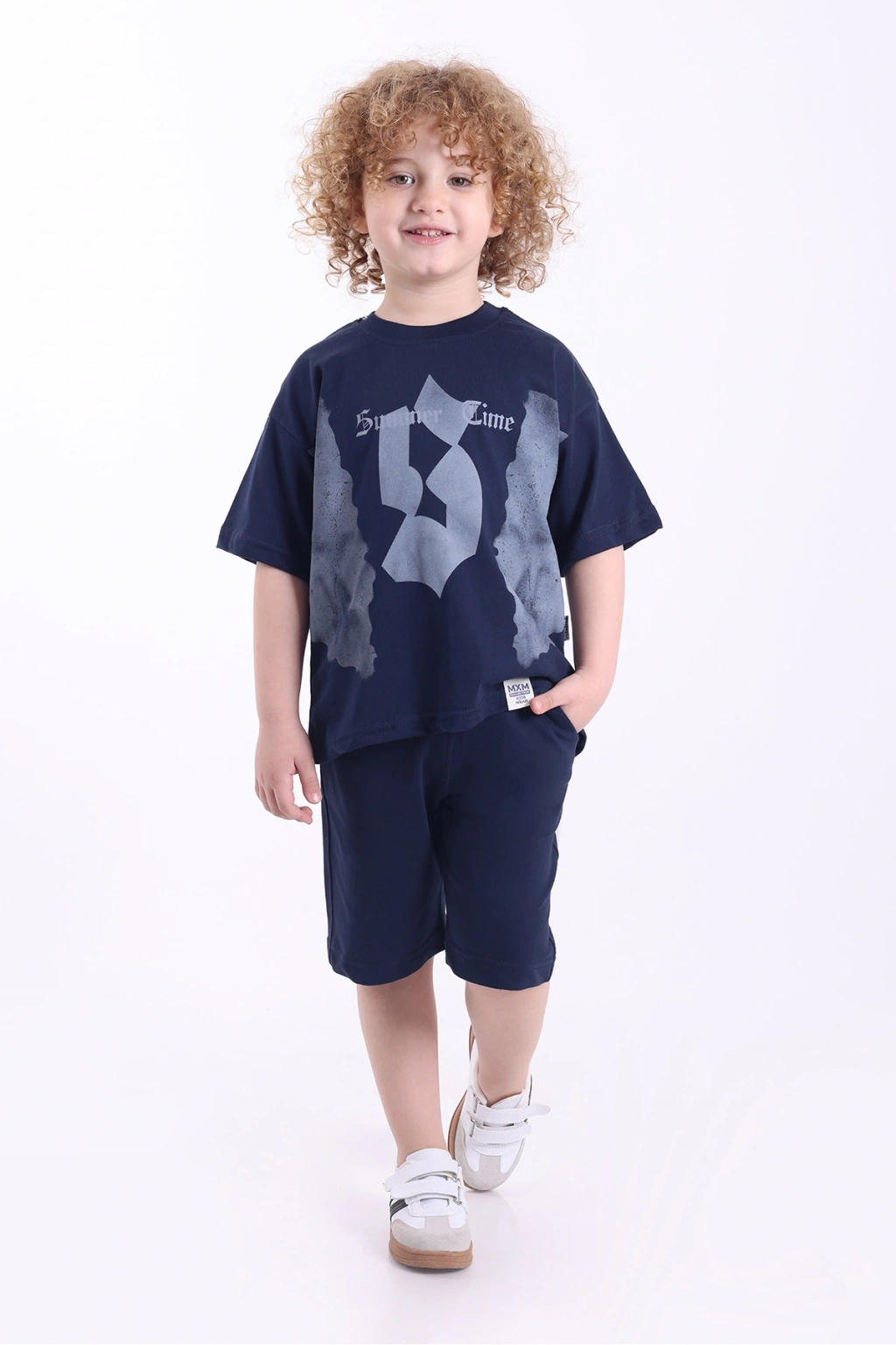 S Baskılı Arma Detaylı 3-6 Yaş Oversize Erkek Çocuk Şortlu Yazlık Takım