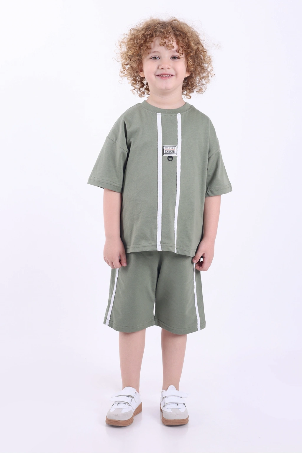 Şeritli Ve Aksesuarlı 3-6 Yaş Oversize Erkek Çocuk Şortlu Yazlık Takım