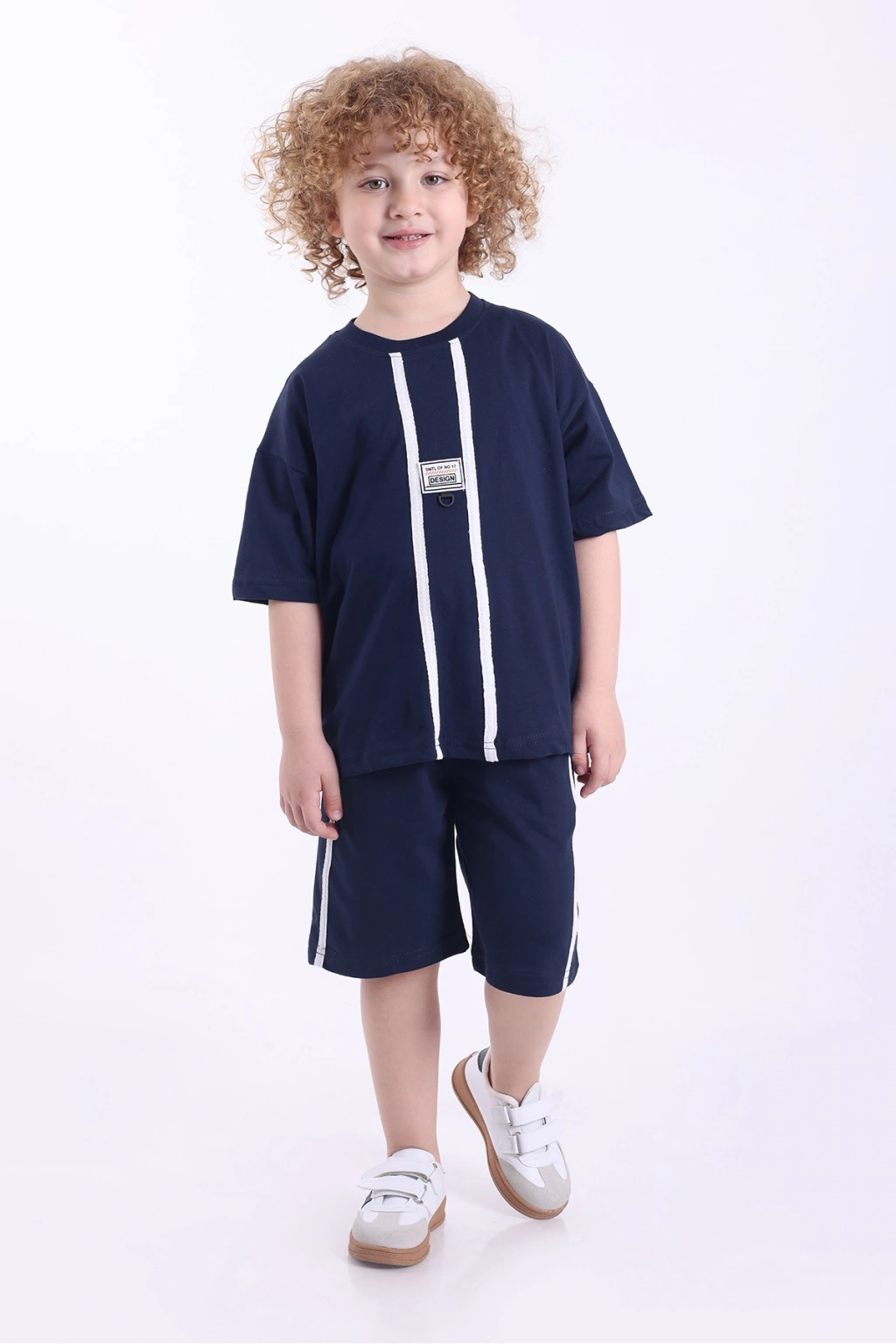 Şeritli Ve Aksesuarlı 3-6 Yaş Oversize Erkek Çocuk Şortlu Yazlık Takım