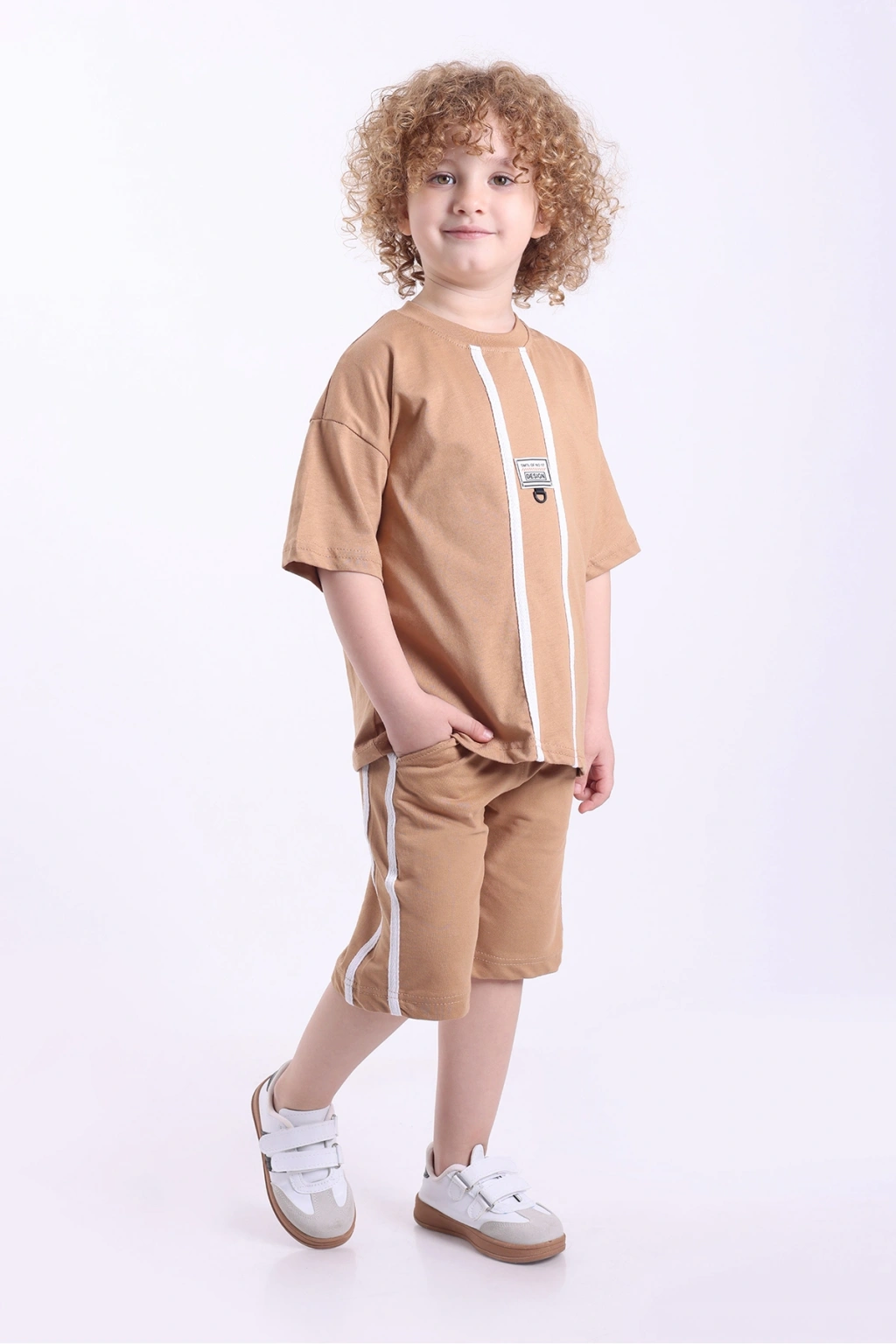 - Rahat hareket etmeyi sağlayan oversize kesim, çocukların gün boyu konforunu artırır.; - Şerit detayları ile modern bir görünüm sunan bu takım, günlük kullanım için idealdir.; - Aksesuarlı tasarımıyla dikkat çeken bu takım, çocukların enerjisini yansıtır.; - Baskılı deseniyle göz alıcı bir stil oluştururken, aynı zamanda rahatlıkla kombinlenebilir.; - Örme kumaşı sayesinde yumuşak dokusuyla cildi tahriş etmez ve uzun süreli giyimde bile rahatlık sağlar.; - Kısa kol tasarımı yaz ayları için serinlik ve hareket özgürlüğü sunar.; - T-shirt ve şorttan oluşan alt-üst takımı ile hem şık hem de pratik bir görünüm elde edilir.; - Casual ortamlarda tercih edilebilecek bu takım, günlük aktiviteler için mükemmeldir.; - %100 pamuk materyali ile nefes alabilir yapıda olup, terlemeyi minimize ederek maksimum konfor sağlar.; - Düşük kol tipiyle modern bir siluet çizerken, kolayca giyip çıkarmayı mümkün kılar.;